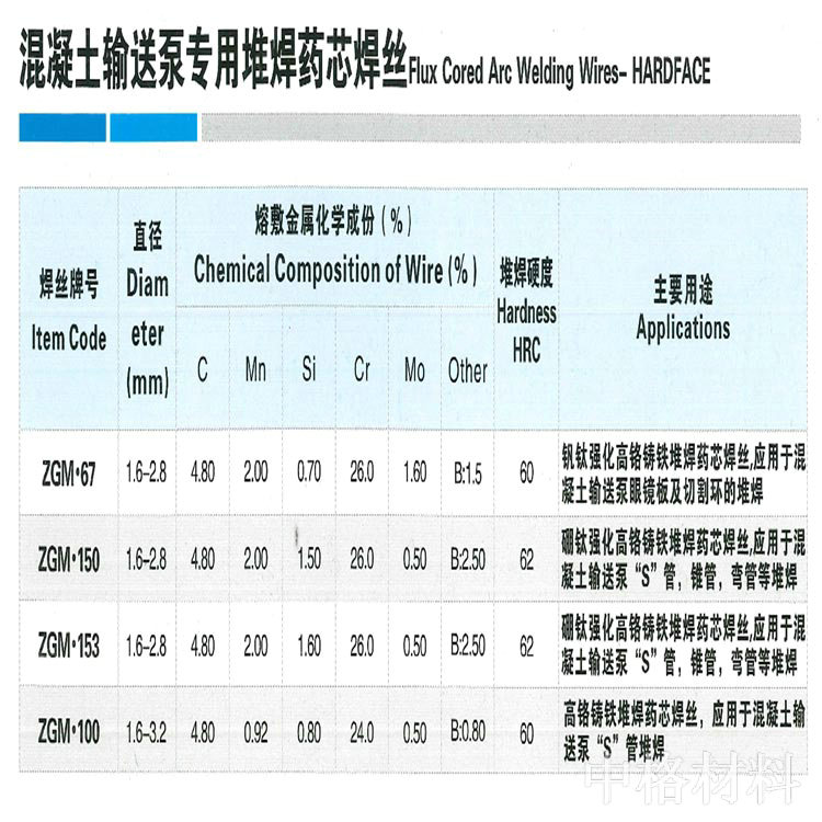 產品分類:混凝土輸送泵專用堆焊藥芯焊絲